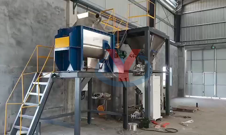 混合系統(tǒng)是物料生產(chǎn)過程中另一個(gè)核心部分。原料經(jīng)過配比之后進(jìn)入混合設(shè)備,通過混合攪拌和傳動裝置進(jìn)行均勻混合。